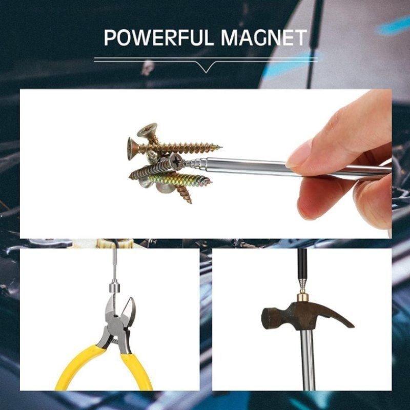 A ferramenta de captação magnética, que pode se estender flexivelmente em espaços estreitos, realiza duas funções de agarre e força magnética.
